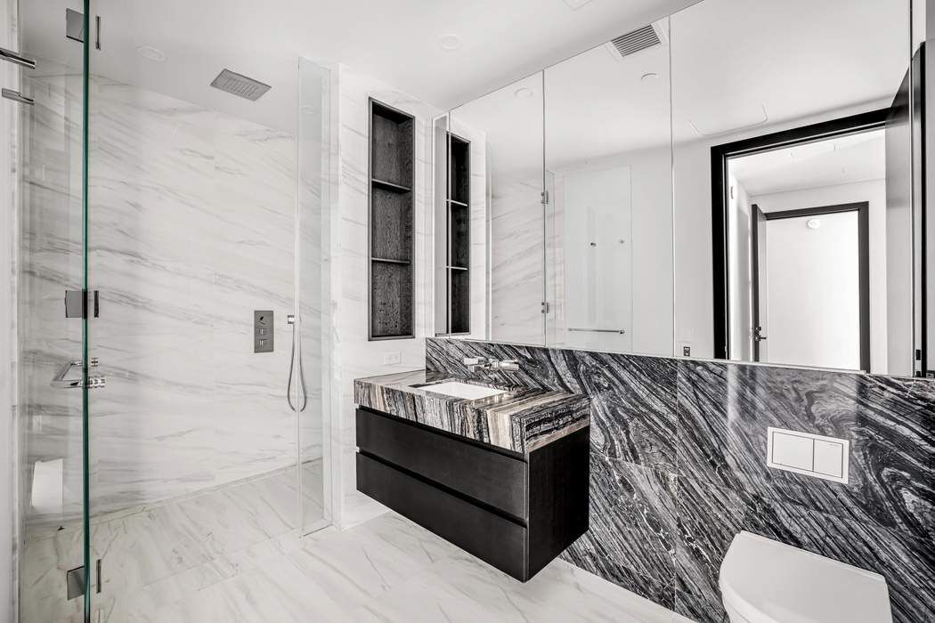 A Sky-Level Masterpiece at The Greenwich. Rising high above the city on the 69th floor, this 2-bedroom, 2.5-bath residence offers an extraordinary, horizon-wide panorama through its signature curved floor-to-ceiling glass. From the deep sweep of the Hudson River to the dramatic skyline silhouettes and the distant arc of the harbor, the view unfolds in one continuous, cinematic frame — the kind you only get at this height and in this building. Inside, the home is crafted with the elevated Terra palette: dark wide-plank oak floors, bespoke walnut cabinetry, and Ombra di Caravaggio marble throughout the kitchen, paired with a fully integrated Miele appliance suite. Over ten-foot ceilings and the seamless glass corner amplify light and space, creating a floating sensation rarely found in Manhattan. The corner great room is an entertainer’s setting, wrapped in glass for immersive skyline dining and gatherings. The kitchen is refined and efficient, with walnut millwork, polished nickel accents, and a vented Miele hood for elevated daily routines. The primary suite is a sanctuary wrapped in Covelano marble, featuring radiant-heated floors, a custom dual vanity, a spa-level walk-in shower, and generous illuminated closets. The second ensuite bedroom provides equal privacy and flexibility for guests or a tranquil workspace. A sculpted powder room completes the layout, along with a Miele washer/dryer for convenience. Residents of The Greenwich enjoy one of Manhattan’s most elevated amenity collections — a truly next-level offering that sets a new benchmark even among the city’s most celebrated towers. Spanning the top floors, the private sky club includes a 50-foot saltwater pool with skyline views, a full fitness pavilion with yoga and Pilates studios, sauna and steam rooms, private treatment suites, a cinema, a fireplace dining room with catering kitchen, co-working and meeting salons, landscaped terraces with fire pits and grills, children’s recreation spaces, and 24/7 concierge services. Every detail is designed to allow residents to live, host, recharge, and entertain at an exceptional level. A rare combination of height, design, scale, and view. A residence that sets New York City’s new standard of living and luxury. Rental Fees • Application Processing Fee: $700 ($750 without broker) • Move-In Deposit (Refundable): $2,500 • Move-In Fee: $500