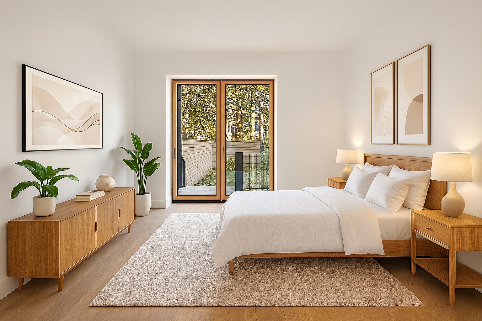 • This is a legal 2 bedroom. The alternate floorplan showing 3 bedrooms is for demonstrative purposes only to indicate an alternative layout. Welcome to this exceptional three-bedroom, three-bathroom duplex offering nearly 1,900 square feet of refined living space at 323 South 5th Street. With soaring 10-foot ceilings, sweeping north and south exposures, and an architecturally considered layout that balances openness with privacy, this residence delivers natural light, volume, and modern elegance rarely found in today’s market. The main level is centered around an expansive, open-concept living and dining area that feels both effortless and elevated. A beautifully appointed chef’s kitchen anchors the space with a full Bosch appliance suite, including a vented gas stove, custom push-to-open millwork, and sleek white quartz countertops that double as a sculptural design statement. Wide-plank white oak floors add warmth and continuity, creating an inviting setting for quiet evenings at home or larger gatherings. A generously sized third bedroom is located on the lower level, ideal for guests, a home office, or a flexible den. Upstairs, both bedrooms feature excellent closet space, large windows, and a calming, airy ambiance. The primary suite stands out with room for a king-sized bed and a dedicated sitting or workspace area. From this level, you step directly into the home’s expansive private backyard—a sprawling outdoor oasis perfect for lounging, gardening, dining, or hosting. This unique urban escape transforms daily living, offering true indoor–outdoor continuity in the heart of the city. Each bathroom offers a refined spa-like quality, wrapped in marble and finished with radiant heated floors. The en-suite primary bath elevates the experience even further with double vanities, an oversized glass-enclosed shower, and a sculptural freestanding soaking tub. Thoughtful details continue throughout this residence, including a fully vented laundry room, dual-zone climate control, noise-reducing windows, and an integrated Bose wireless speaker system for seamless, immersive sound. Styled with intention and built with craftsmanship, this duplex offers a compelling blend of luxury, comfort, and functionality. Set at the nexus of vibrant culture and quiet residential pockets, 323 South 5th places you moments from some of Williamsburg’s most beloved eateries, cafe´s, and boutiques. Local parks, lively arts and cultural destinations, and easy access to the J/M/Z and L trains make daily life both convenient and connected. Here, the best of Brooklyn living—creative energy, tree-lined streets, and a true neighborhood feel—comes together effortlessly.