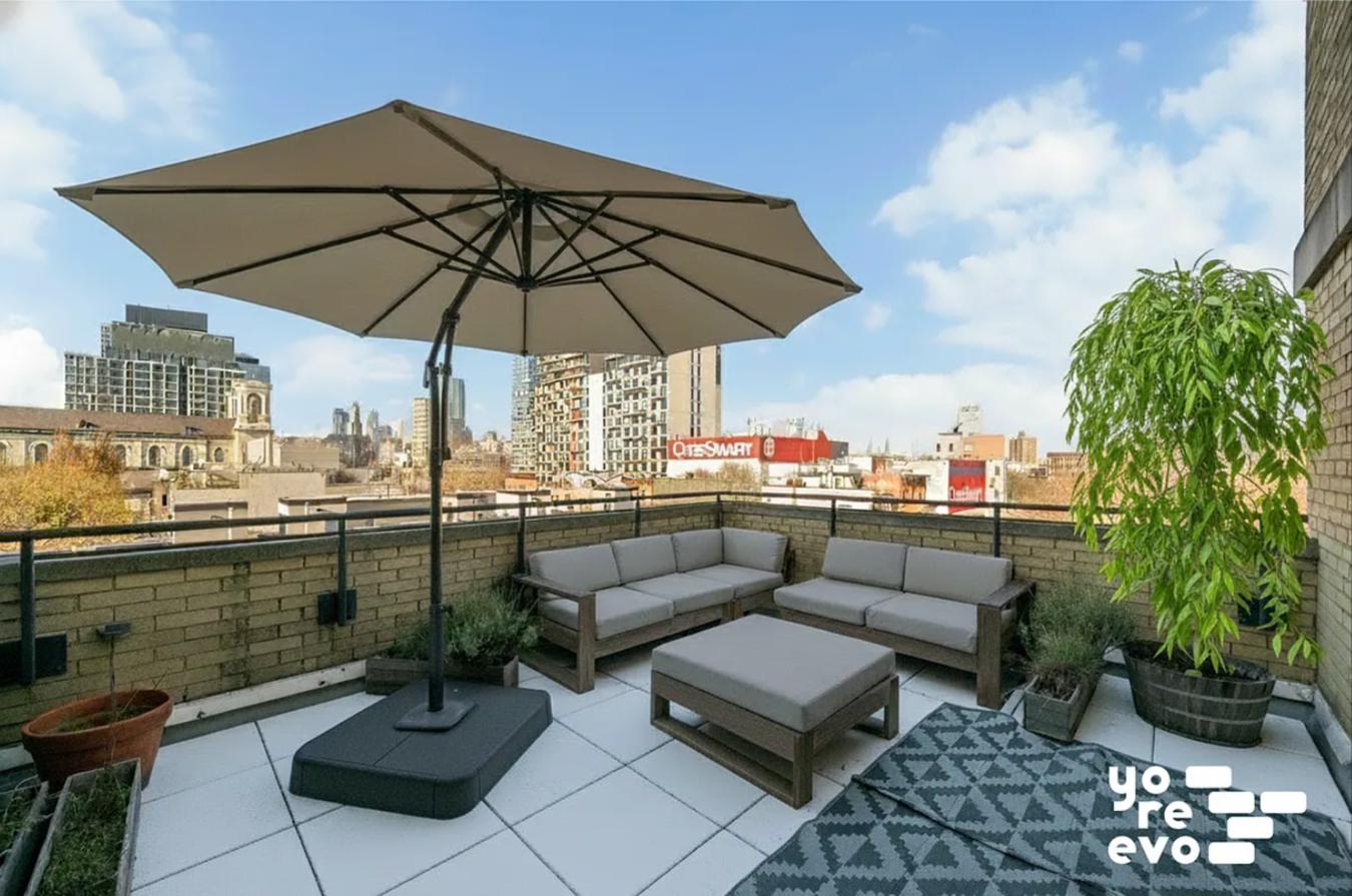 Welcome to Penthouse B4I at 35 Underhill Avenue a bright, two bed, two-bath spanning over 1,100 square feet plus another 400+ square feet spread over two large terraces.