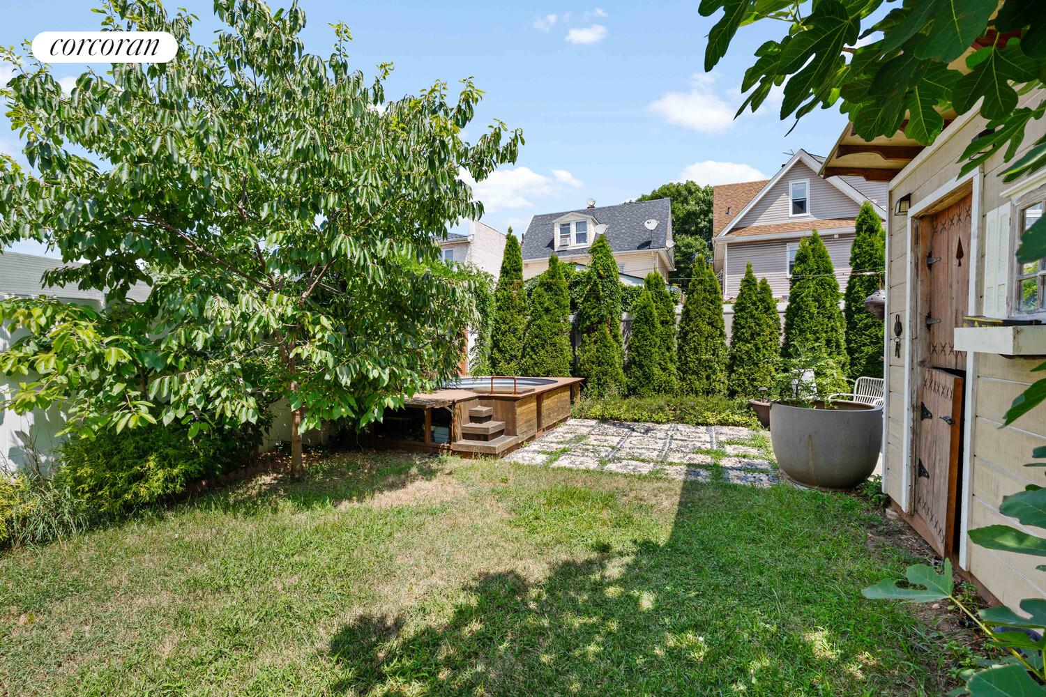 Outside is the property's true showpiece: a covered patio opens to a lush, meticulously landscaped backyard complete with abundant foliage, an Italian honey fig tree, a built out storage shed and a charming dipping pool - an idyllic setting for summer entertaining and quiet relaxation. A private parking and patio area in front of the house completes the dream!