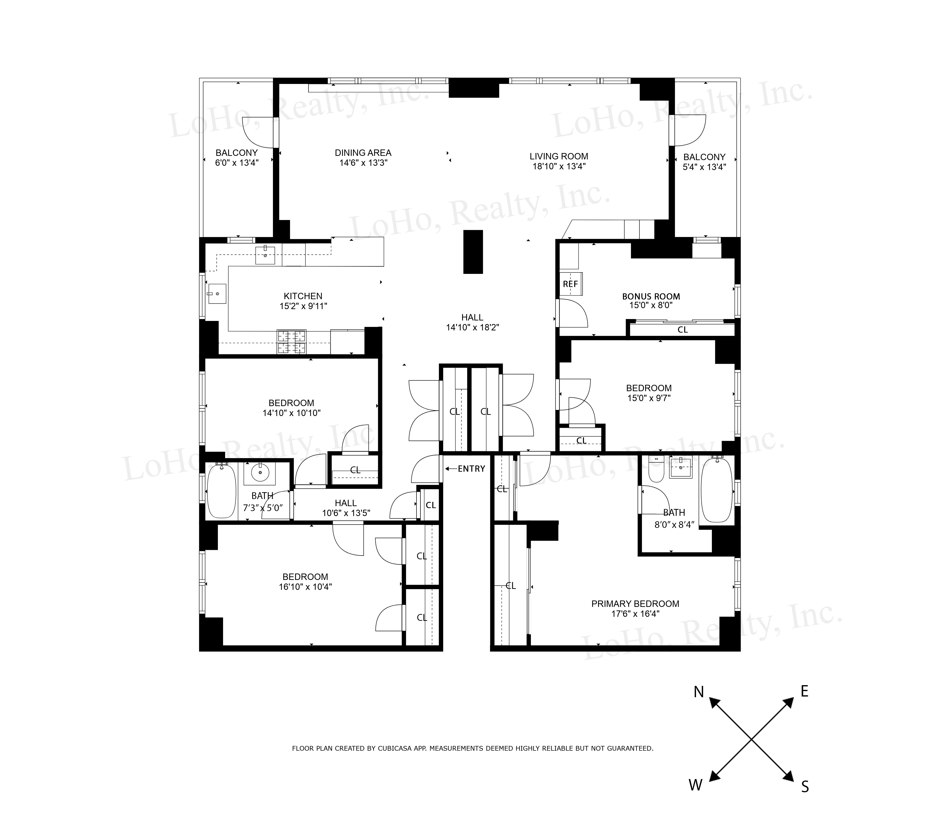 o Combined closets on both sides of the apartment to create an oversized front coat closet and a spacious linen closet.