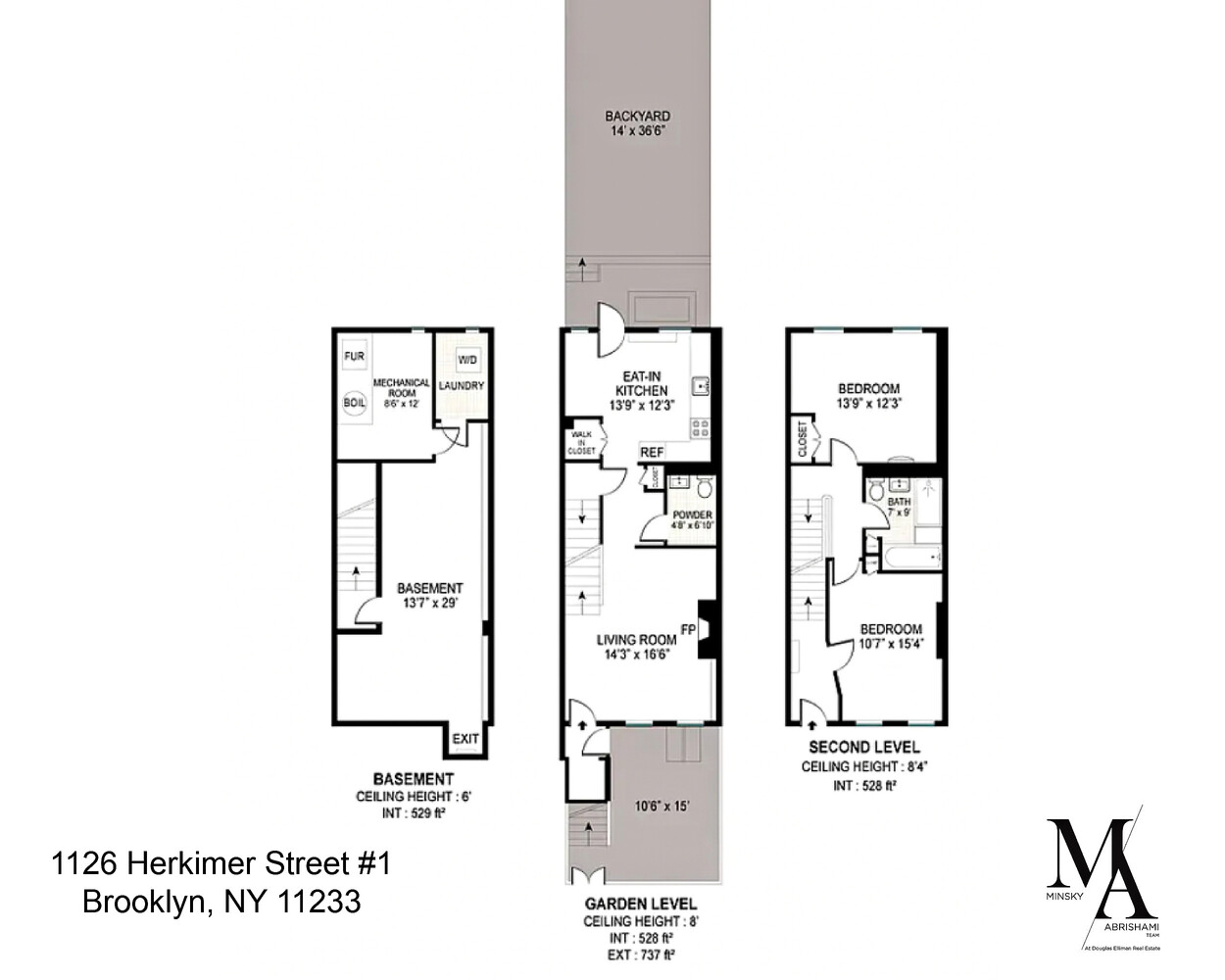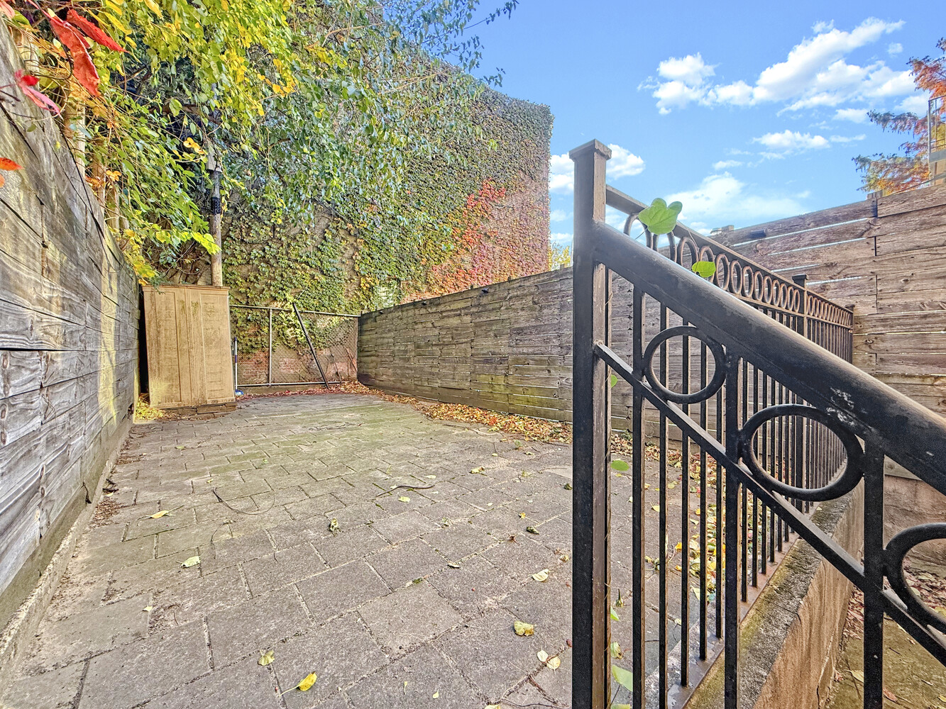 Make this charming 2-bedroom, 1.5-bath duplex with a private backyard your next home in Ocean Hill. Spanning approximately 1,585 square feet, including the private basement, this residence offers a thoughtfully designed layout that combines modern finishes with classic Brooklyn character. The garden level features a spacious living room with a decorative fireplace and a separate eat-in kitchen outfitted with custom white cabinetry, stone countertops, stainless steel appliances including a dishwasher, and a tile backsplash. A half bath and direct access to the private 737-square-foot backyard-ideal for outdoor dining or entertaining-complete this level. The private basement, accessible directly from the garden floor, provides additional storage and includes the in-unit washer/dryer for added convenience. Upstairs on the parlor level are two generously sized bedrooms, each with ample closet space, along with a full bathroom featuring modern fixtures, sleek tiling, a deep jetted soaking tub, and a separate glass-enclosed shower. Conveniently located near the A/C trains at Rockaway Avenue, this home offers easy access to local favorites such as Cuts & Slices, Beets Café, Trad Room, Olmo, and Daily Press Coffee & Bar. A refined and spacious home in one of Ocean Hill's most connected locations.