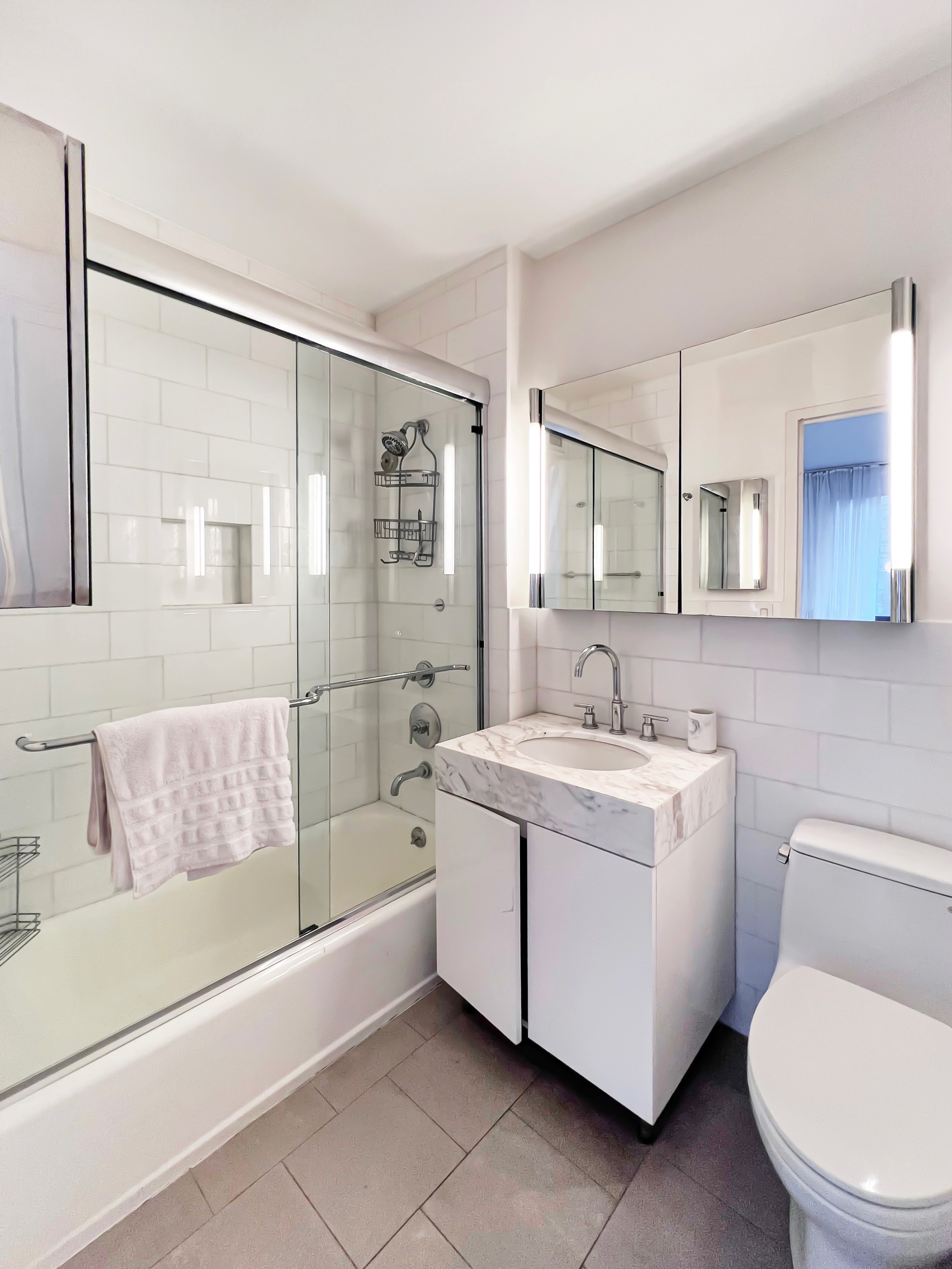 This stunning residence features one bedroom, two full bathrooms, and a dining room or second bedroom, in a boutique building in a prime area of Manhattan. With northern, eastern and southern exposures and floor-to-ceiling windows throughout, your evening and daytime views are strikingly luxe. With a fully-appointed kitchen featuring Bosch appliances, a Liebherr refrigerator and Grohe Ladylux Chrome fixtures, the chef's kitchen is sure to suit all your entertaining needs. The master suite features beautiful custom California built-ins, and offers a luxurious en-suite bathroom featuring fixtures by Grohe and Turkish Calacatta marble. The dining area or second bedroom features panels creating a private space which you can use as either a dining area or second bedroom- which is not to mention, accompanied by a second adjacent full bathroom. The apartment is available unfurnished, and building amenities include a landscaped roof deck with grilling station and wet bar, resident's lounge with library and media room, gym, fitness studio, treatment room and laundry lounge.