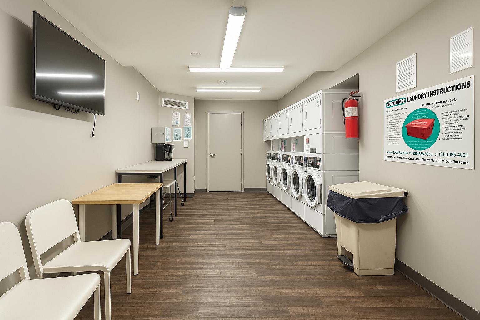 A laundry room in each of the buildings,