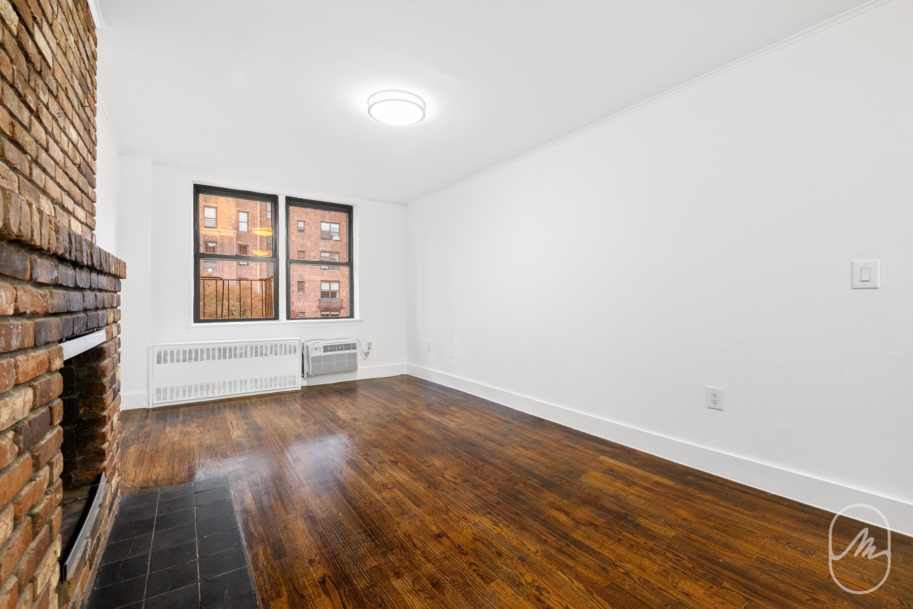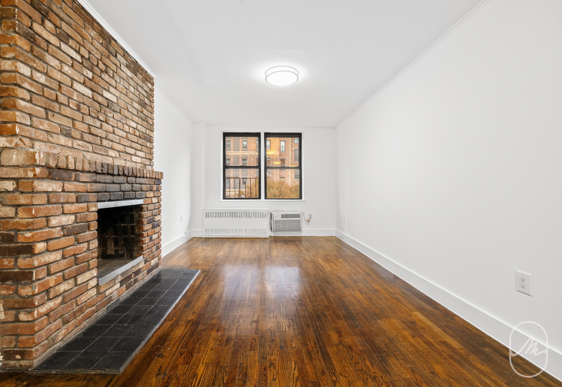 This is a fantastic 1 bed / 1 bath on the 4th floor of the building. It features an upgraded kitchen and a newer full bath. High ceilings, hard wood floors, a decorative fireplace, huge windows. The bedroom will easily fit a queen bed, a desk and a dresser with great storage. Ac units built in