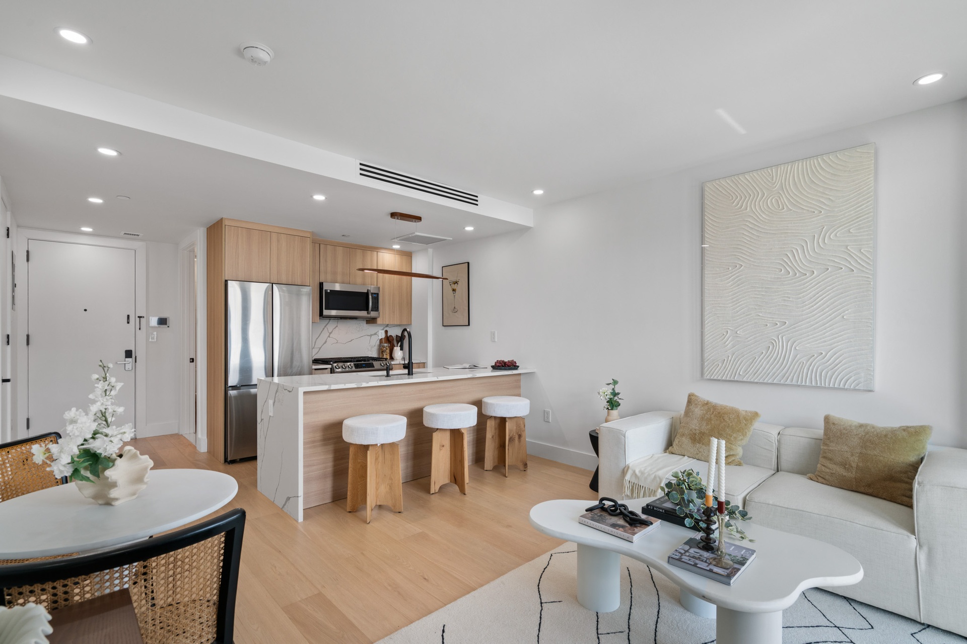 A perfect blend of sophistication and warmth, this modern one-bedroom residence is your personal oasis with spacious interiors that extend to an outdoor balcony, perfect for moments of relaxation. Triple-paned floor-to ceiling windows bathe the space in natural light while ensuring a quiet ambiance and multi-zone VRF heating and cooling systems offer optimal comfort and ease. Expansive 9' ceilings and rich, wide-plank European oak floors luxuriate the space while smart entry locks and in-unit washer/dryers add convenience. The chef’s kitchen impresses with white oak cabinetry, quartz countertops, and premium full-suite of Samsung appliances, all complemented by sleek matte black fixtures. The bathroom offers a serene retreat, featuring cream ceramic tiles, custom digital mirror vanities, and a deep-soaking Kohler bathtub—perfect for unwinding after a long day. Tucked away in a vibrant corner of Astoria, The Mo¯na stands as a five-story boutique residence, offering just 14 thoughtfully designed spacious homes that combine modern luxury with serene comfort for a peaceful retreat from the city’s hustle and bustle, Designed for easy, elevated living, amenities at The Mo¯na include a modern fitness studio, rooftop terrace with city views, a stylish lobby, and secure on-site parking. Private storage, a package room, and cutting-edge Acuvox intercom technology complete the experience, offering both convenience and peace of mind. Just outside the doorsteps of The Mo¯na, is the dynamic energy of Astoria, from eclectic dining and charming cafes to vibrant markets and specialty shops, everything you need is just a short stroll away. The N/W subway lines are just minutes from your door, making a 15-minute ride to Midtown Manhattan effortless. LaGuardia Airport and multiple bus routes are also easily accessible. Known for its top-rated schools and peaceful, tree-lined streets, Astoria offers a harmonious balance of urban convenience and residential charm. The Mo¯na is not just a place to live—it’s an invitation to experience life at its best. Schedule your private showing today and discover this exceptional opportunity. The complete offering terms are in an offering plan available from sponsor, 272123 Crescent Street LLC, located at 99 Jericho Turnpike, Suite 300C Jericho ,NY 11753. File no. CD230223. All artist’s renderings are for representational purposes only and subject to variances. Equal Housing Opportunity.