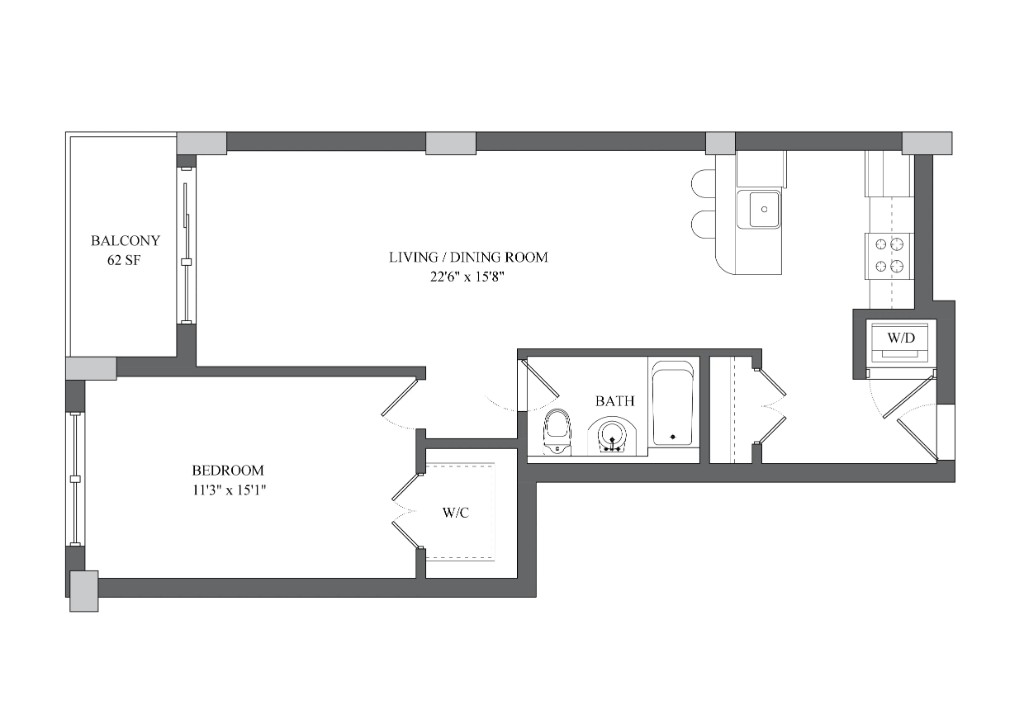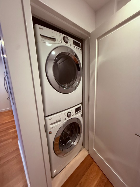 Youll also love escaping to your enormous bedroom measuring a whopping 11'3 x 15'1", which easily allows for a king-size bed, furniture set and desk or space for your Peloton. Additional apartment features include a huge 28 sf walk-in closet, a vented LG washer and dryer, pristine white oak hardwood floors, and central AC.