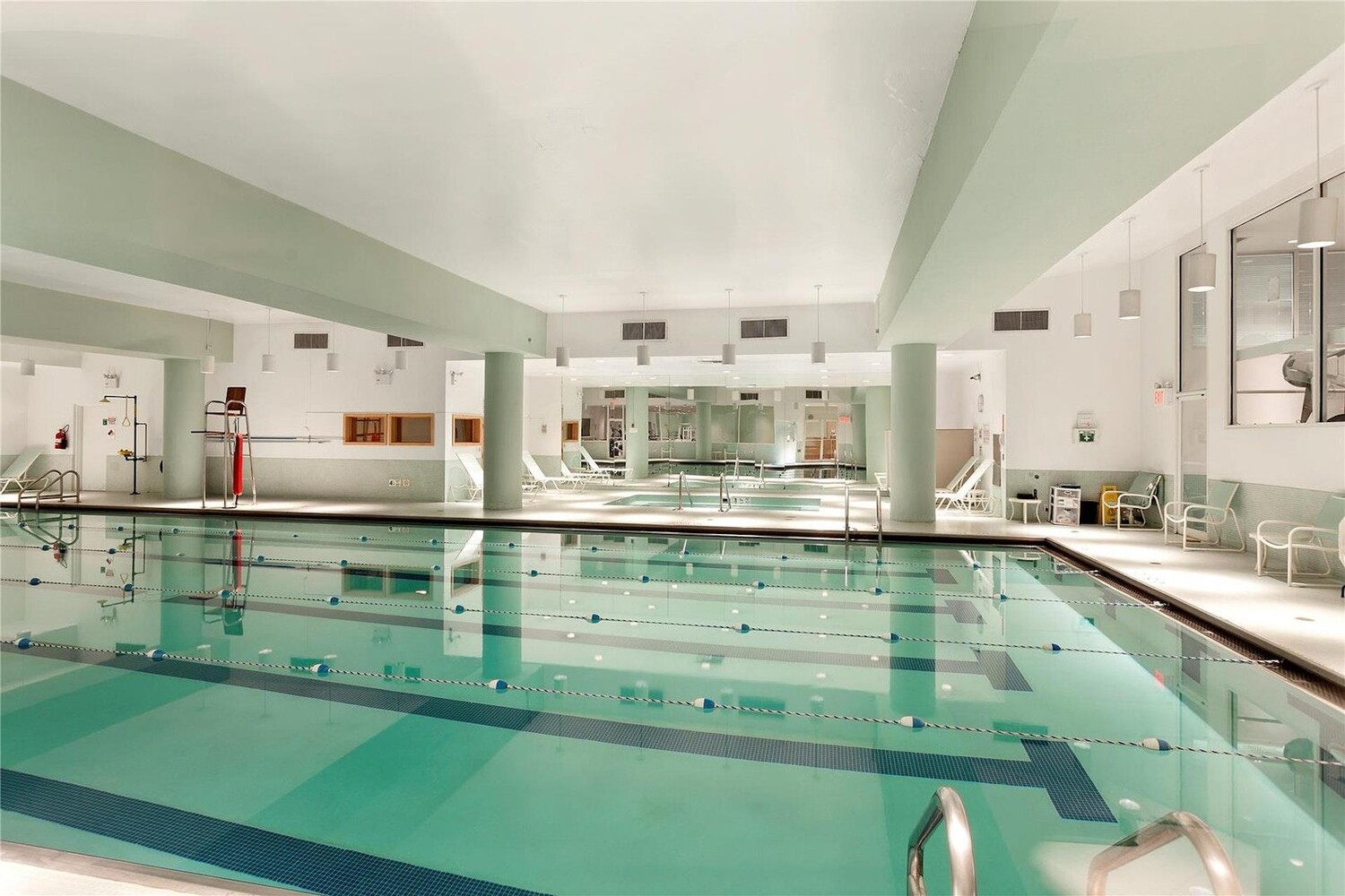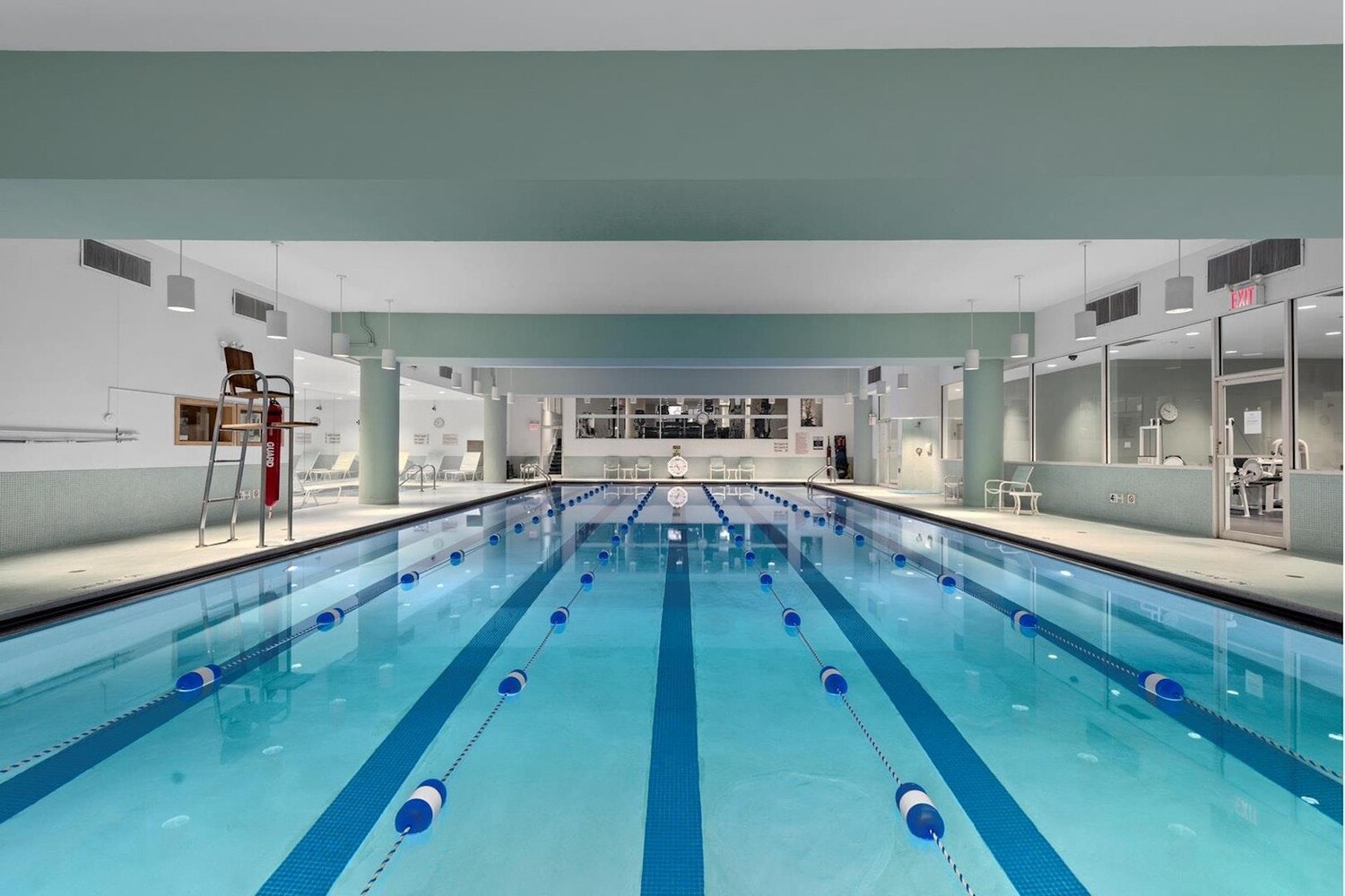 The Vanderbilt offers an impressive array of complimentary amenities, including a 70-foot swimming pool, sauna, jacuzzi, squash and basketball courts, and a lounge area with a ping-pong table. Locker rooms feature steam showers, and the fully equipped gym includes cardio and weight machines. A lounge/party room is also available for private event rentals.